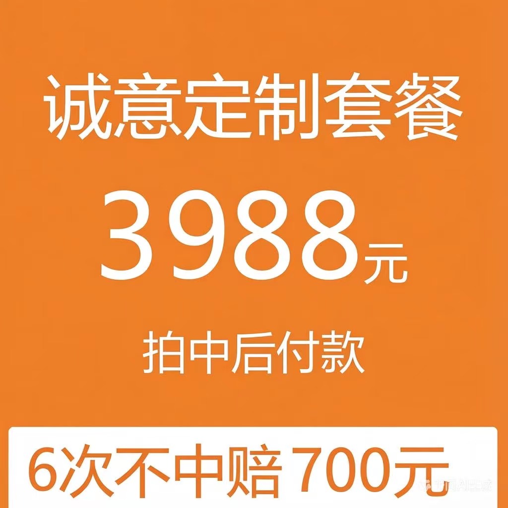 1、3988元套餐为拍中后再付款,拍中牌之前1分钱不付,安全无风险;